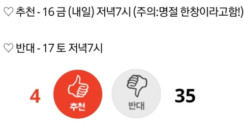 댓글에 일요일에 회의하자는 의견도 좀 나와서 토ㅡ일 추반 한번 더할까 물어봤는데 아무 반응없어서 그런데