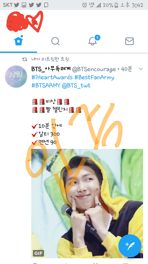 오늘 아이하트 다른팬덤데이에요 오늘만큼은꼭1위해야하는대 벌써역전ㅠ