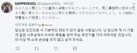 결론; 쟤네가 엑소 욕하려고 이 계정주 트윗을 가져오면, 무시하셈