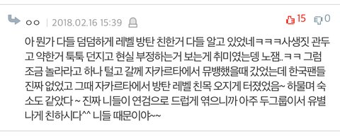 이러니까 ㅇㄱㄹ가 날뛰지 ㅋㅋㅋ 떠보지 말고 평소 방탄 봤으면 알거아냐 진짜 ㅋㅋ 이럴땐 ㅇㄱㄹ보다 눈치없는 팬이 더 짜증남