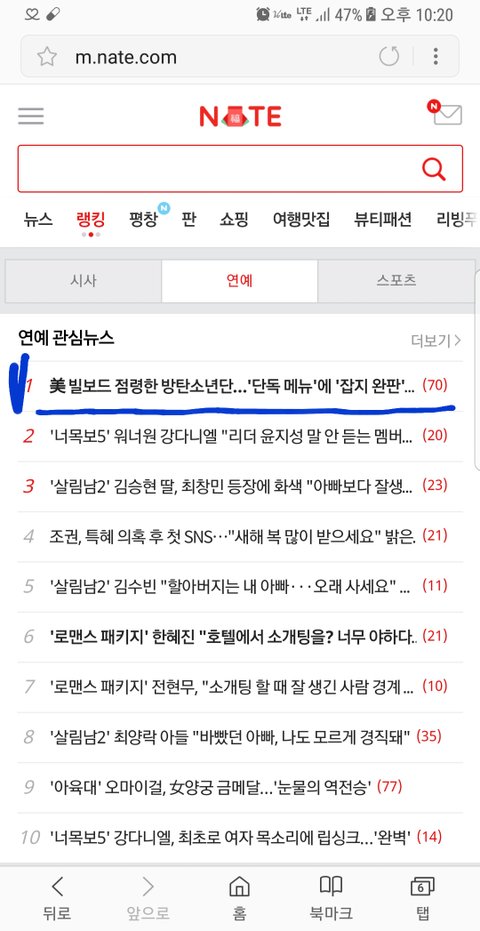 네잇트 연예랭킹 방탄 기사 3위,, 댓글 ㄱㄱ