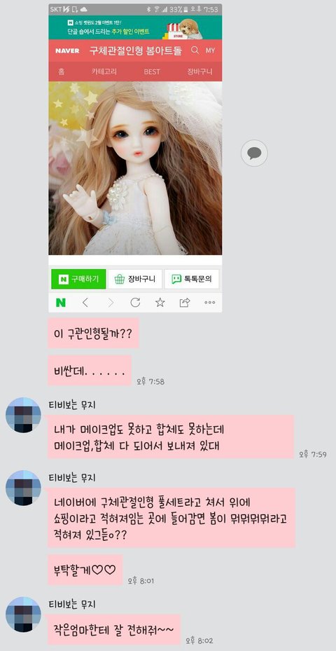 그리고 엄마는 구체관절인형을 사주고 나는 동생이 철이 없는것같지만 그래도 안쓰러워서