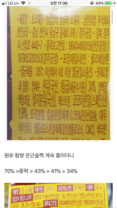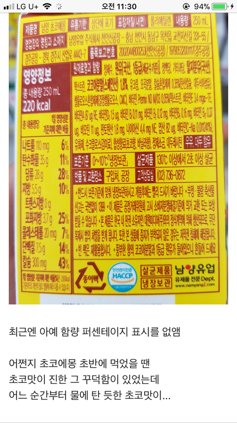 ㅋㅋㅋㅋㅋㅋ 미친 저거 점점 갈수록 줄여서 어쩐지 맹물맛 나더라 남양 양심 없네 한 번 뜨니까 속임수 애지게 쓰는듯