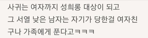 근데 남혐이 문제가 아니고 저거 ㄹㅇ임 서열 낮은 남자애들보면 여친까지 싸잡아서 낮게 봐서 ㅈ같아짐