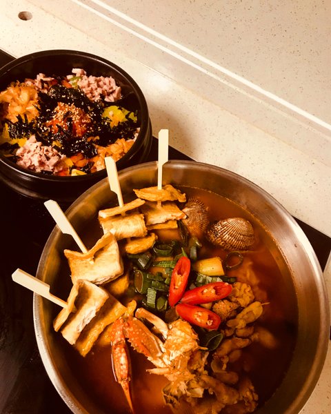 그리고 만든 철판 카레볶음밥 , 산 순대국