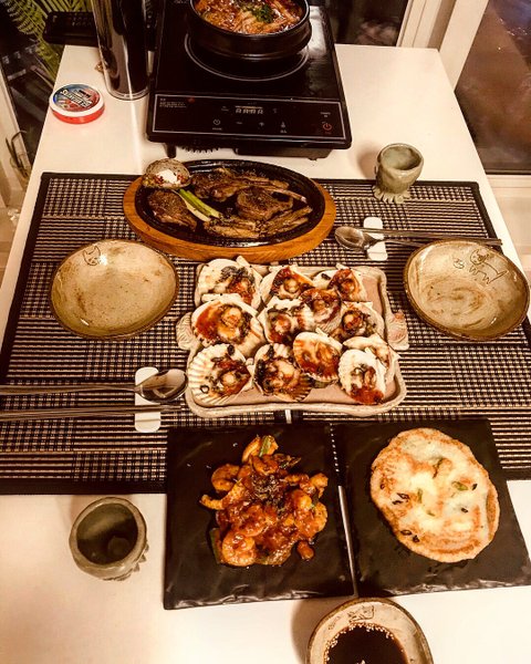 새우랑 랍스타등 가재류를 안좋아하는 친구라 술상 차리고 미안했어요 ㅠㅠ 대신 가리비는 잘먹길래