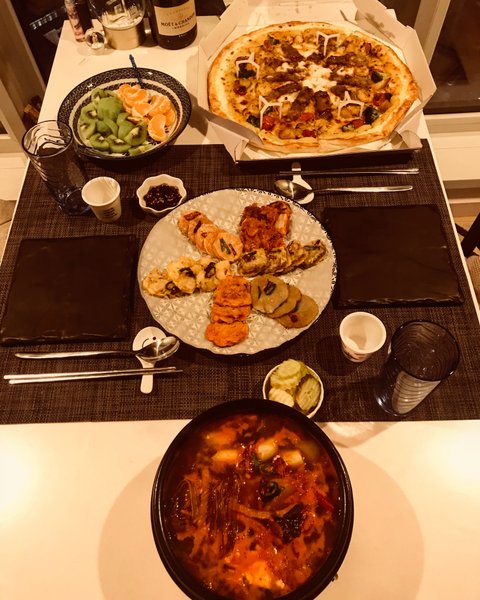 열심히 안주를 만들고 있는데 친구가 피자가 먹고싶다고해서