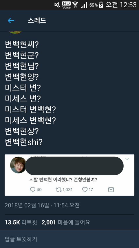 트위터 일진 윾셀...백현팬들 극성...오짐...이제부터 변사마라고 부를게요...한 번만 봐주세요