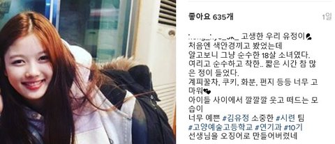 김유정으로 학교 촬영장 등 인성 주작질을 하도 많이 하니까 인증은 이렇게 하는거 라고 올림