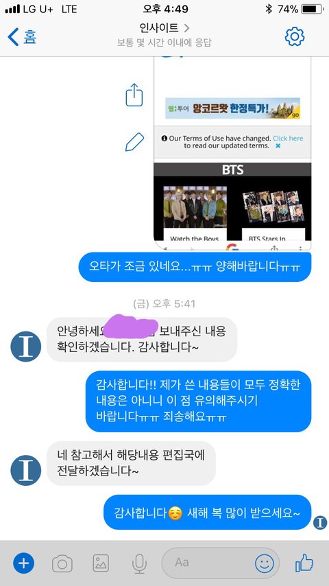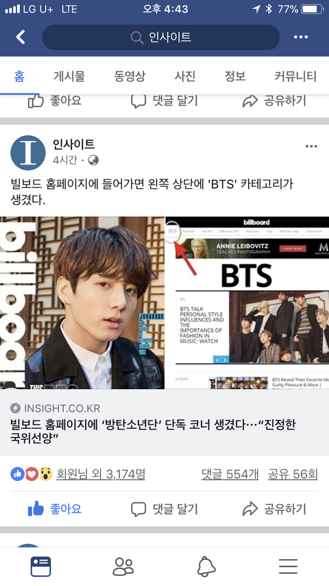 내가 탄이들 빌볻 기사 안나오는게 너무너무 답답하고 얼굴책이 영향력도 꽤 큰 편이어서 인1사이트에다가 제보를 했었어