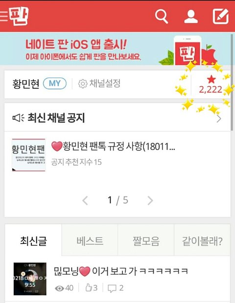 나 진짜 오랫만에 팬톡왔는데 즐찾수 보구 놀랬오