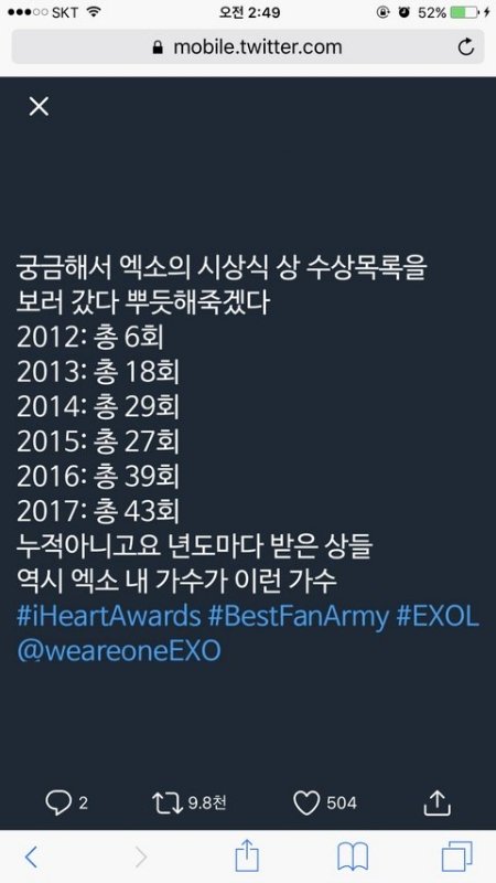 이쯤에서보는 엑소 수상경력