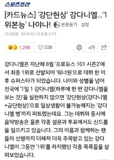 기사)'강단현상' 강다니엘…'1위본능' 나야나!