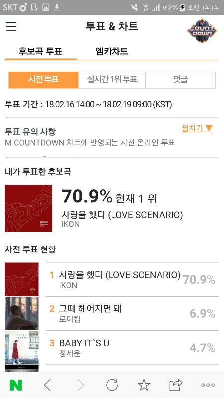 ㅇㅋ사전투표제발하자 오늘아침에한건데인증으로올릴께 제발해줘...우리 지금 2위랑10퍼차이밖에안나..분명 아침에 진짜많이차이났는데ㅠㅠ우리 방송점수0점인거 알지?격차커야 이겨 제발하자ㅠㅠㅠ