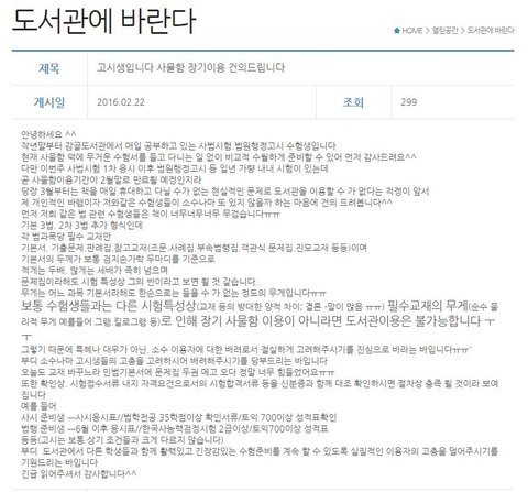 로 사법고시준비하는(이제 없어졌지만) 소수의 사람들 장기사물함 건의하는 글입니다