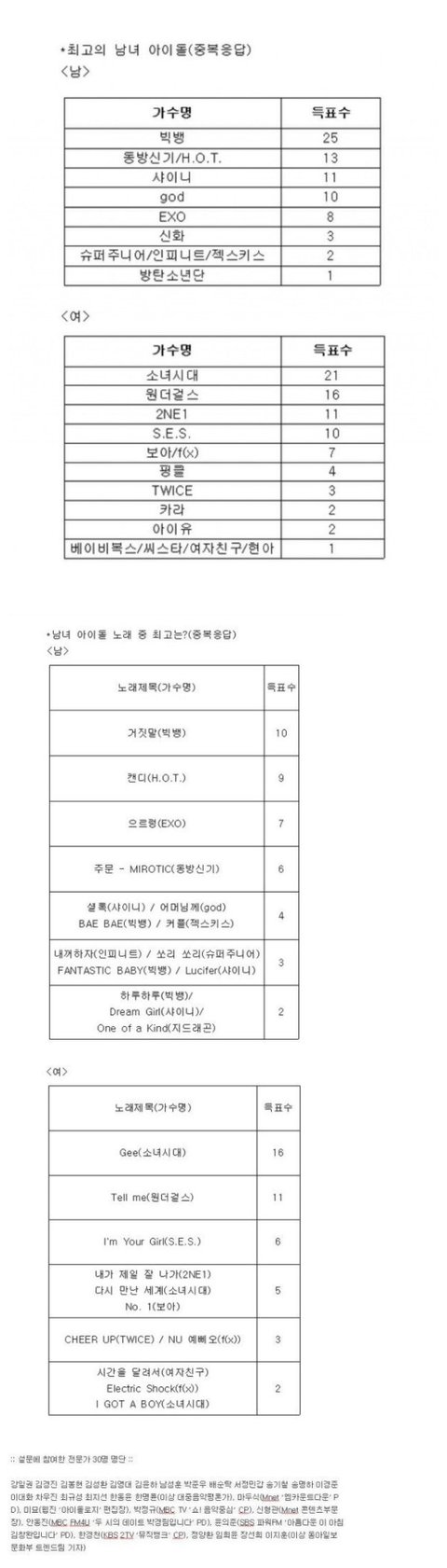 1996년 H.O.T데뷔이후 아이돌 탄생 20주년 기념으로 전문가들 모아서 투표
