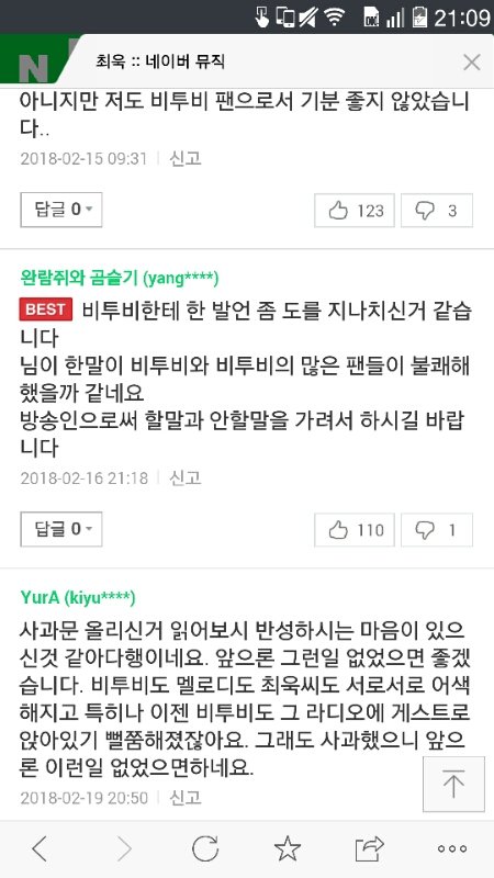 댓글에 안녕하세요 비투비 팬 멜로디입니다. ~~이러이러해서 사과해주시면 감사하겠습니다. 이런 댓글이 대부분임