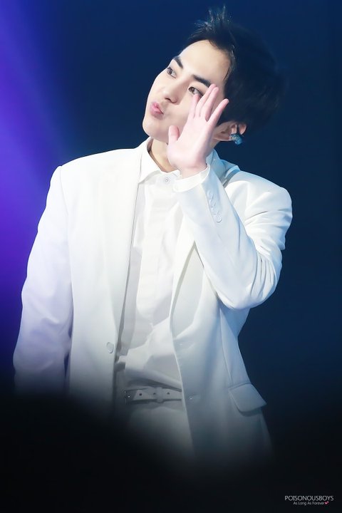 시우민 뒤돌아서 팬들 보는데 광대 빵싯