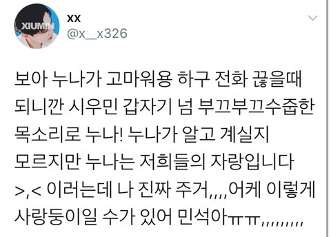 누나 형들에게 애교 쩌는 시우민 음성 듣고 가세여ㅠㅠㅠ