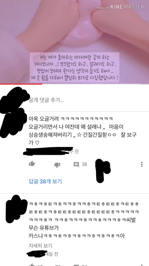 진짜 유튜버 나이 제한 시켰으면 좋겠다 누가봐도 다 여자티 나는데 점띄,문띄 다 하고 ㅋㅋㅋㅋㅋ 무엇보다 남핀 코스프레 하는 게 제일 맘에 안 들어