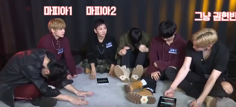 같은 멤버들이 심각하게 못하기는 하는데...(참고로 이 사진은 약과고 자기 마피아 아니라는거에 역할 적힌 쪽지 보여주는 애도 있었고 자기가 마피아면 탈퇴하겠다는데도 죽이는게 젭제임)