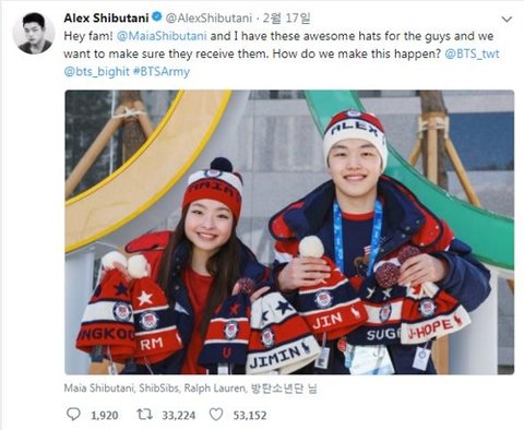 피겨 ice 댄스 미쿡 팀에 마이아 시부타니 알렉스 시부타니 남매가 방탄소년단의 엄청난 팬이야! 이번 올릠픽에서 동메달 받은데다가 엄청 사랑스러운 남매팀이고 타 커뮤니티에서는 시부타니 남매 동메달 받았으니까 방탄소년단이랑 사진 찍게 해주라는 말도 나왔졍ㅋㅋㅋㅋㅋㅋ 방탄 인기 많은 건 알고 있었지만 내 장르에서까지 나올 줄은 몰랐어서 깜짝 놀랐넹 ㅠㅠ 이미 알고 있었으면 미안미안 무시해줘