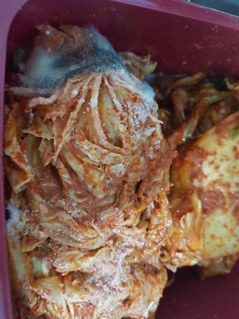 집에서 밥을 잘 안해먹어서 ㅠㅠ김치에 곰팡이가 폈어요..
