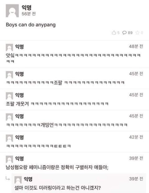 손나은 휴대폰케이스 때문에 화제가 된 문구, 너무나 당연한 문장을 '논란'거리로 만든 남성들은 이 문장을 보고도 화를 냅니다. Boys can do anypang 뭐가 잘못됐나요?