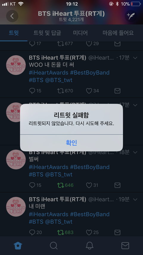 한참 하는 중에 갑자기 R티하면 이런 창이 떠 ㅠㅠ 왜 그런지 아는 이삐 있으면 알려주라