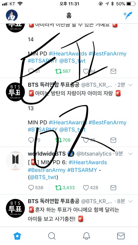 오늘 추이 안 좋더라도 제홉 믹테뜨는 날, 슈가 생일, 아핱정식라인업 뜨는 날에는 추이 역대급일거라고 장담함...그때까지 열심히 달리자 이삐들