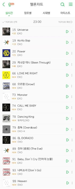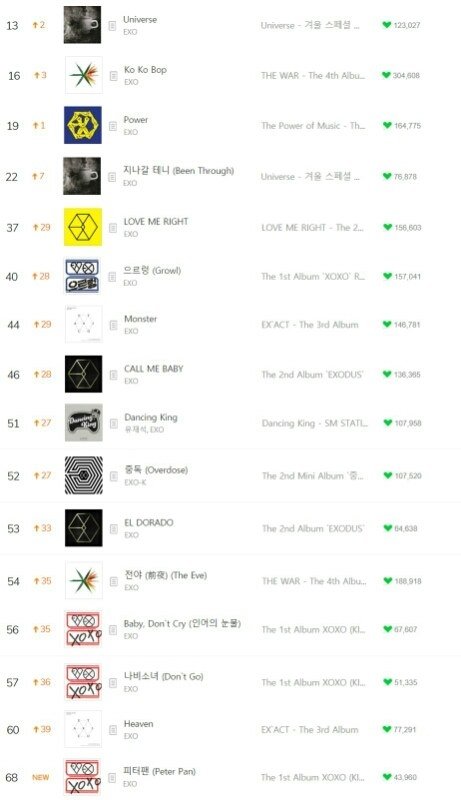 지금 겨우 2시간만에 빠르게 차트인되고 현재는 오히려 모든노래가 63위에 다 차트인되어있음 근대 ㅍㅁㅅ날 24시간돌린다 생각해보셈 최소 모든노래가 50위안에 들텐데 50위중에서 무려 16곡이 엑소노래임 ㅅㅂ ㅠㅠ엓부심오지고ㅠㅠㅠㅠㅠㅠㅠㅠㅠㅠ
