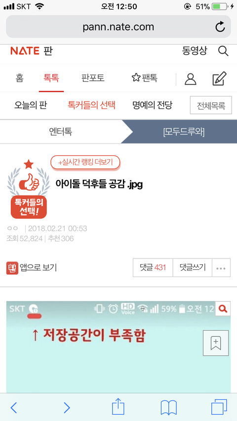 ㅌㅅ 상위글에 댓추천누르고왔어