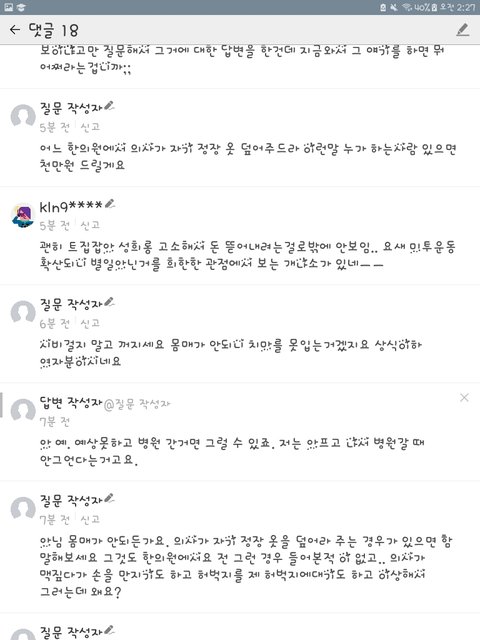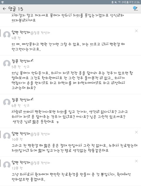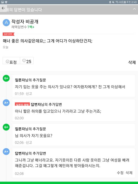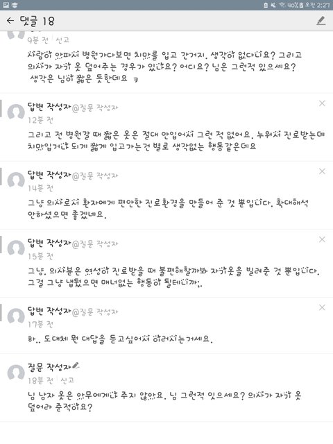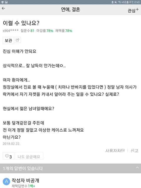 여자 다리 덮으라고 자기 옷 건네주는 남자의사에 대한 질문에 답변을 했는데..