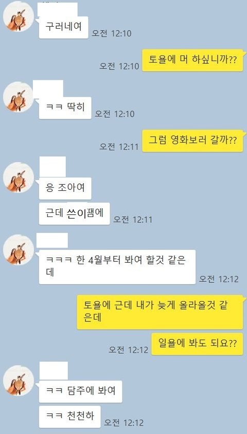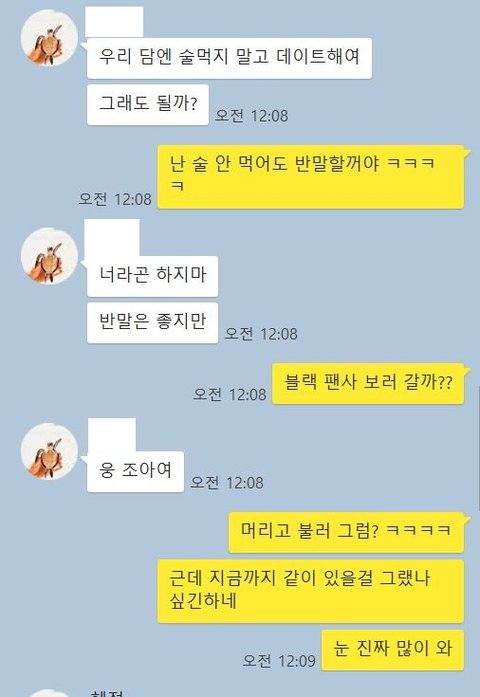 B: 여친이랑 둘이 있는 것 같은데 두 분이서 좋은 시간 보내세여. 왜 날 껴주는거지?난 오늘 운동하고 엄마 머리 염색해줬어여 과장님 이상해멘탈 정비해여 ㅋㅋㅋㅋㅋ