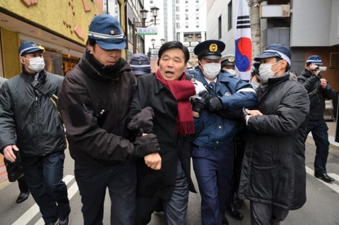 사진은 일본경찰한테 연행당하시는 최재익 항의단장님이셔
