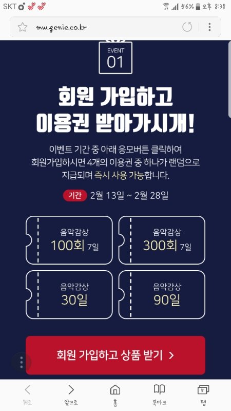 지1니 회원가입만 새로 하면 저거 4개 중에 1개 준대!!