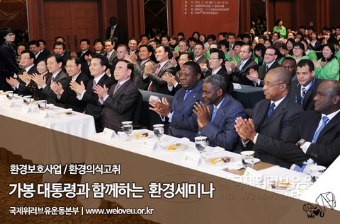 가봉 대통령이 우리에게 더 특별한건 핵안보정상회의 참석차 한국에 방문한 알리벤 봉고 온딤바 가봉 대통령이 국제위러브유운동본부 장길자 회장과 회원들의 환경복지운동에 크게 공감하고 기후변화에 공동으로 대응해 갈 것을 협약했기 때문입니다. 그리고 이 일을 통해 가봉에도 환경운동이 더욱 더 활발히 전개될 수 있도록 함께 노력하기로 했습니다.
