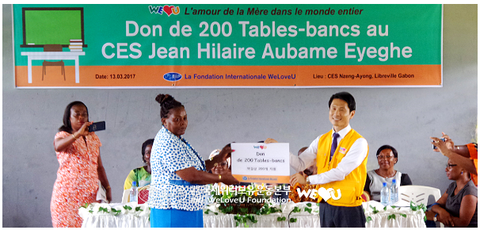 수도 리브르빌의 엔자이용에 위치한 장 일레르 오밤 에예게 중학교(C.E.S Jean Hilaire Aubame Eyeghe)에 책걸상 200개를 기증한 것입니다. 엔자이용은 가봉에서 처음으로 클린월드운동을 전개한 곳이기도 합니다.