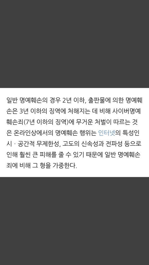 4이버 명예훼손이 형량 제일 쎄네ㅋㅋㅋㅋㅋㅋㅋ