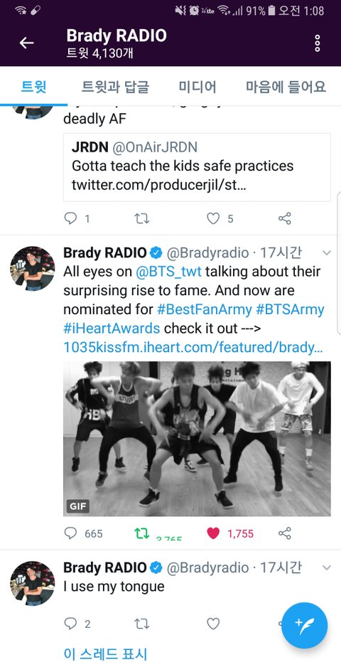 키스 에펨 시카고 라디오(아이하트 산하 라디오래..)에서 Brady 라는 분이 방탄 기사 올려주셨어 감사 답멘 리튓 달러 갔다와