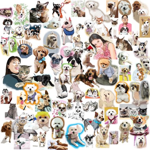 제 일터인 <노트펫>www.notepet.co.kr 의 '그려드립니다' 코너에 3년 동안 그려드린 회원분들의 반려동물입니다. 꼬마도 있고 청년, 중년, 노년에, 아픈 아이, 무지개 다리를 건넌 아이, 너구리에, 수의과대학에서 키우는 늑대까지 있습니다. 새삼 이 아이들이 얼마나 많이 사람들과 희노애락을 함께 해 왔는지 눈가에 선하게 떠오르는 듯 합니다. 모두모두 행복한 정을 나누는 식구로 살아가시길 기원합니다..^-----^ 반려동물을 키우는 분이라면 <노트펫>에 회원이 되시고 '그려드립니다' 코너에 사진을 보내주세요~ 제가 열심히 그려드립니다~ 그림 원본은 여기 그림보다 훨씬 커요..!