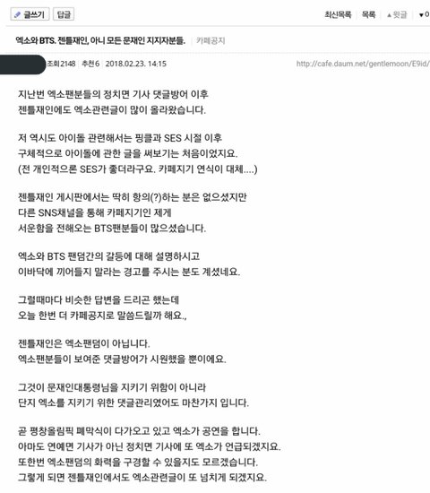 도대체 왜 저러는거임 저 팬카페에 우리 관련 글이 꽤 올라왔다는 사실은 어떻게 안거고..,,,?