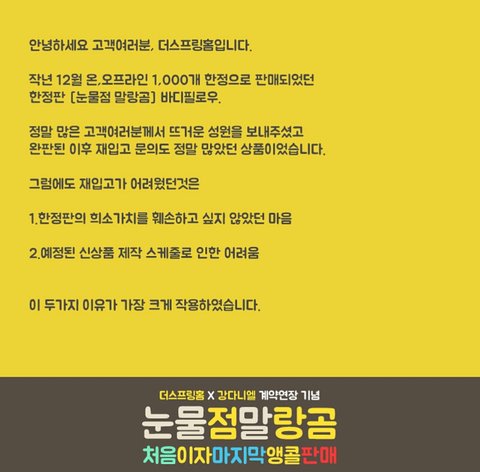 계약연장기념으로 녤랑곰 앵콜판매 ㄷㄹㄷㄹ