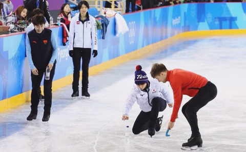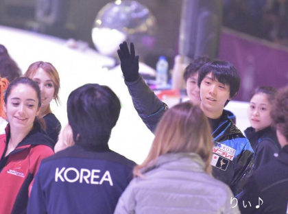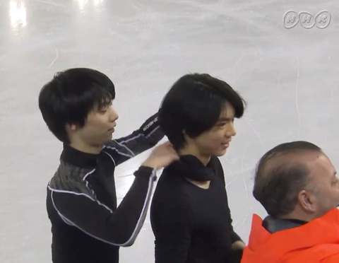 하뉴가 준환이한테 와서 인사하고 챙겨주고