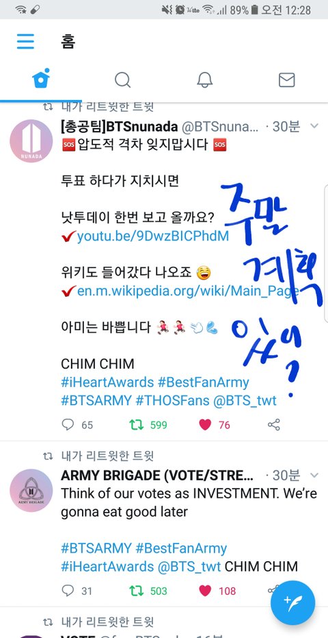 투표할거지? 나 사실 폐막식땜에 잠도 안와 우리 이길 수 있겠지? 거의 50여일을 1위 지켜왔는데 일요일에 지면 억울해서 멘탈 나간거 같아. 그래서 말인데 팬톡 이삐들 일욜날 꼭 투표하자 그리고 분명 실트 전쟁날텐데 우리도 쌈박한 실트 내놔야 아미들이 적극적으로 참전하지 않을까? 진짜 서로간의 실트전쟁일텐데 절대 지고싶지 않아 실트문구에 대한 이삐들 의견은 어때?