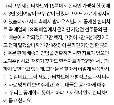 이게 말장난 하는 것처럼 보일지 몰라도 지금 한터 답변 내용 때문에 3만장이나 팔아치운 '한 곳'이 어딘지 모른다는 이유로 우리가 해명이 안된거라고 하는 거잖아 정확히 3만 3천장이 한 곳에서 나갔다는 답변을 들은 자료가 있나??