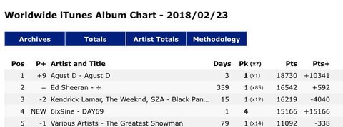 얘들아 지금 미국 아이툰즈 첫화면에 윤기앨범 있다.
