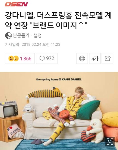 기사)강다니엘, 더스프링홈 전속모델 계약 연장 "브랜드 이미지↑"