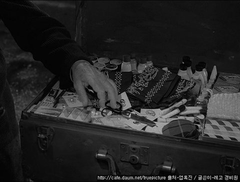 한 편, 노인은 밤길 한 가운데에서 트렁크를 펼친 채
