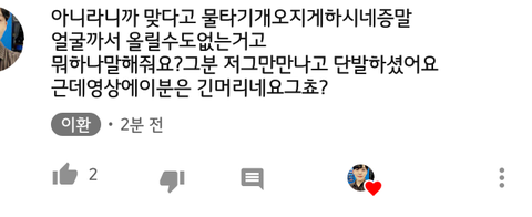 자기가 언급하지 말라고 했으면서 댓글로 단발했다고 언급함..